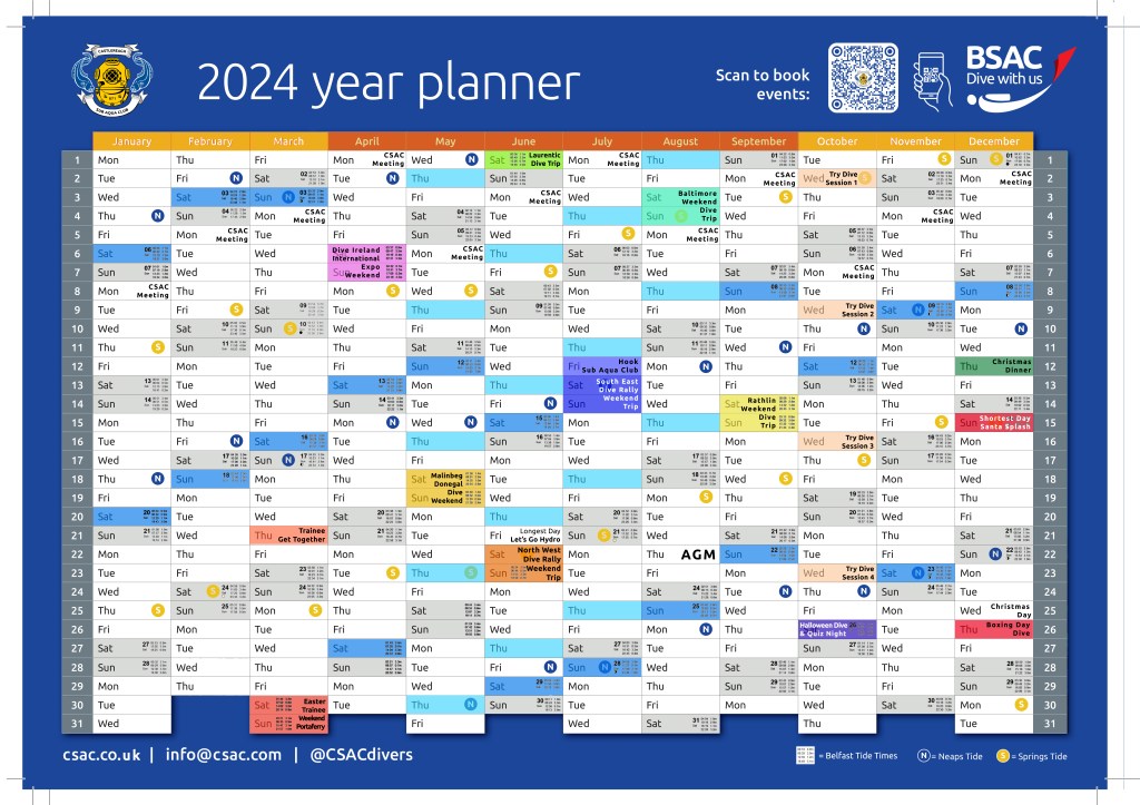 This planner is to allow CSAC members to see the scheduled dives yet to come.