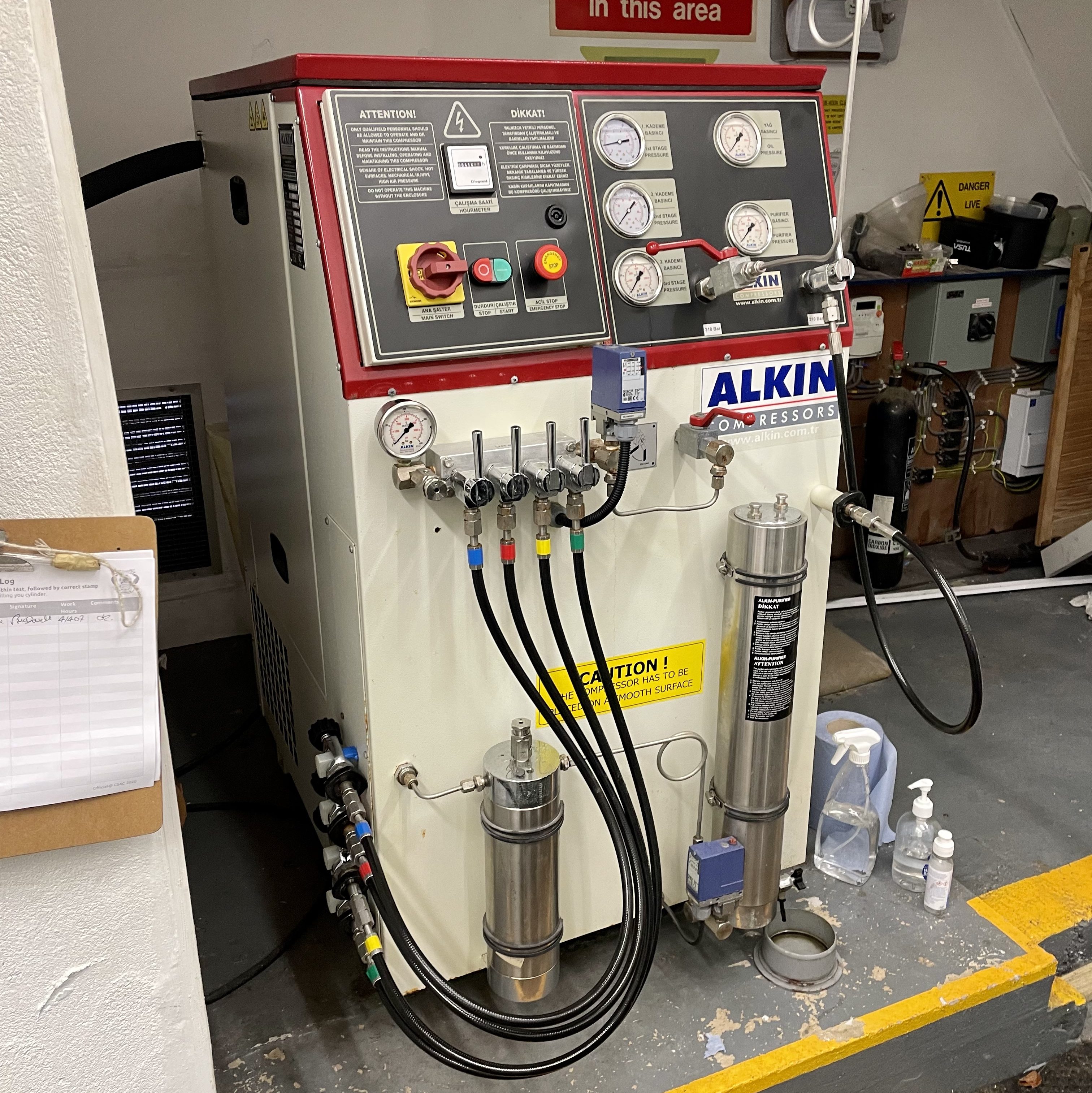 In Alkin 3 Stage 4 whip Compressor, able to fill both 230bar and 300bar Cylinders.